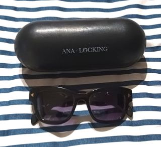 Gafas de sol de la marca Ana Locking, con un diseño moderno y elegante. - Montura de color negro. - Lentes de color morado. - Incluye estuche protector.