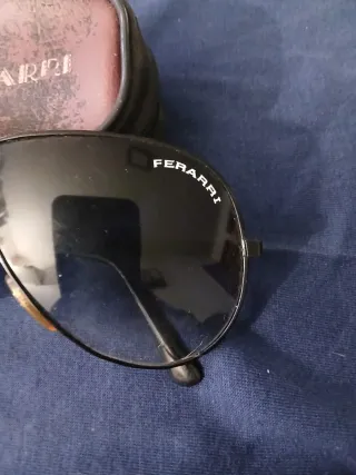 Gafas de sol estilo aviador de la marca Ferrari, un accesorio clásico y elegante. - Montura en color negro. - Lentes oscuras. - Incluye funda protectora un poco desgatada las gafas como nuevas no envios etc