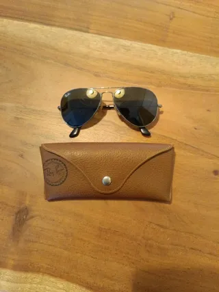 Clásicas gafas de sol Ray-Ban modelo vintage aviador, como nuevas. - Montura dorada. - Lentes oscuras. - Incluye funda protectora. En mano en Madrid.