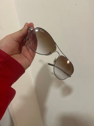 Gafas de sol Ray-Ban originales con diseño clásico de aviador. - Montura plateada. - Lentes degradadas en tonos azules - Las gafas están en perfecto estado - Se venden sin la funda original