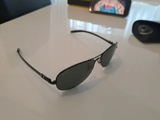 Gafas de sol estilo aviador de la marca Ray-Ban. - Montura de color negro. - Lentes polarizadas en tono grisáceo. - como nuevas, ningún arañazo ni rasguño en lentes o montura - se entregan con funda