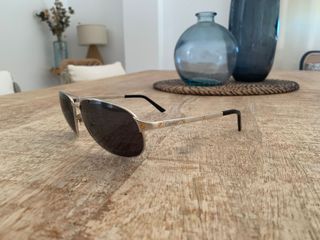 Elegantes gafas de sol para hombre, con un diseño vintage compradas hace tan solo unos meses en el Corte Ingles por 970,'€ - Montura dorada. - Lentes en tono marrón.