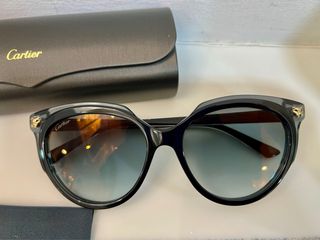 Elegantes gafas de sol de la prestigiosa marca Cartier. Un accesorio sofisticado para complementar tu estilo. coleccion Pantene Originales con targeta de autenticidad del proveedor. En la lente izquierda parte superior hay una pequeña rallada Lentes de la fabrica Zeiss ( alemana) con antireflejante - Montura de acetato en color negro. - Detalles metálicos en tono dorado. - Lentes con degradado.