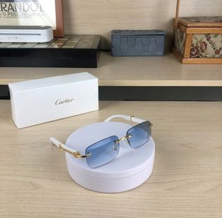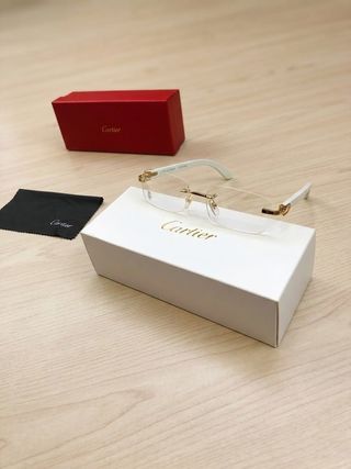 Gafas Cartier originales con elegante diseño sin montura y estructura metálica en acabado dorado con varillas blancas. Lentes claras de estilo sofisticado y ligero, con detalles icónicos de la firma Cartier que aportan exclusividad y distinción. Modelo de lujo ideal para quienes buscan un accesorio elegante y moderno. Se entregan completamente nuevas, sin uso, en estado impecable, con caja Cartier roja y funda original incluidas. Producto revisado por vendedor profesional. Realizo envíos rápidos y seguros, perfectamente embalados. Compra con total confianza. #Cartier #GafasCartier #CartierEyewear #Lujo #AccesoriosPremium #moda