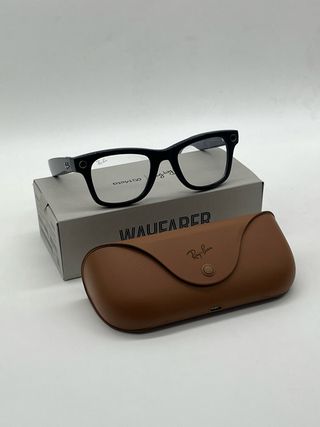 Gafas Ray-Ban Meta con montura negra. Es maqueta. No funciona el mecanismos ni camara. Es maqueta. Se podria graduar. 50 23. Sin uso - Diseño moderno y elegante. - Montura de acetato. - Lentes transparentes.