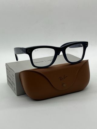Gafas de sol Ray-Ban Meta Wayfarer en color negro. Incluyen funda y caja, lo que se ve en la foto. Las vendo porque no uso la cámara, tienen ligeras marcas de uso pero se ve perfectamente, al igual que las fotos y vídeos (adjunto 3 últimas fotos realizadas con ellas) El precio es fijo, no contesto a ofertas ni cambios