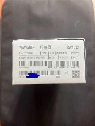 Gafas de sol Meta Ray-Ban Wayfarer modelo RW4008. - Perfecto estado, muy poco uso - Montura F Matte Black. - Lentes Polar Gradient Graphite. - Talla T155 S53. - Compradas 26/8/25 - Fecha de fabricación 07/25. - Fecha de caducidad 07/27. - Totalmente funcional, altavoces y cámara - Incluye funda/cargador en perfecto estado y paño original