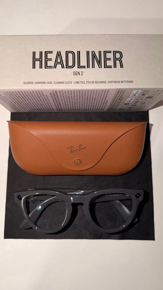 Gafas inteligentes Ray-Ban Meta Headliner. En caja original. (usadas 1 vez) - Montura marrón. - Lentes de transición - Incluye funda y paño de limpieza. Cámara ultra ancha de 12 MP para fotos y vídeos inmersivos. Audio direccional con 5 micrófonos y altavoces abiertos. Control táctil y por voz Meta AI: captura y gestiona contenido manos libres. Autonomía ampliada con funda de carga portátil: hasta 8 cargas adicionales. Diseño headliner en color marrón con acabado premium. Cristales polarizados de transición: bloquean reflejos y deslumbramiento, mejorando la visión.