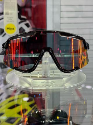 Nuevas Gafas de sol con un diseño deportivo y moderno con acabado espejo y efecto degradado Montura negra con detalles laterales Estilo envolvente para mayor protección #gafas #gafasfiesta #gafasbici #ciclismo
