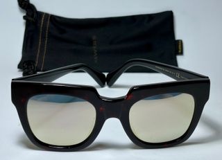 Gafas de sol con montura de carey y lentes espejadas. - Montura de acetato. - Lentes con protección UV400. - Diseño moderno y ligero.
