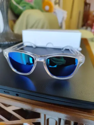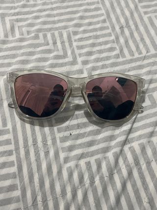 Sin estrenar. Las vendo porque me las regalaron y no me gusta como me quedan. Gafas de sol con un diseño moderno y lentes espejadas. - Montura de color gris translúcido. - Lentes con reflejos morados y azules.