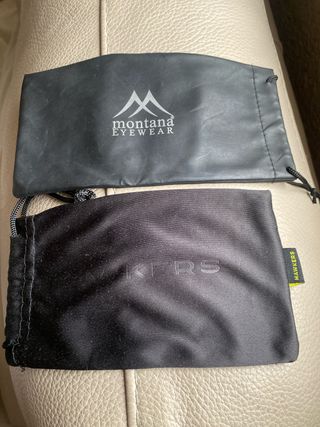 Dos fundas para gafas, una de Montana Eyewear y otra de Hawkers. - Funda negra de Montana Eyewear. - Funda negra de Hawkers.
