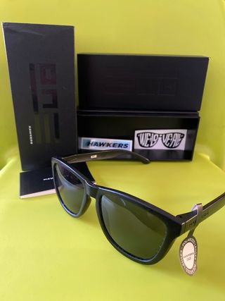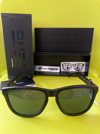 Gafas de sol Hawkers con montura negra y lentes verdes. Incluyen su caja original y pegatinas. - Montura de acetato. - Lentes con protección UV400.
