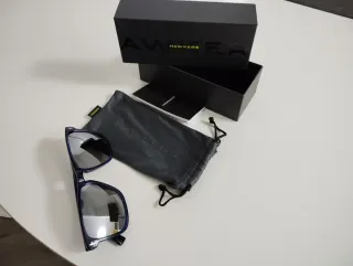 Incluye caja original Hawkers y gafas MYO. - Caja de color gris y amarillo. - Bolsa de tela para las gafas.
