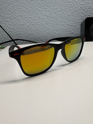 Gafas de sol con lentes polarizadas. - Montura de color negro. - Lentes con tonalidad púrpura. Están en buen estado. No tiene ninguna rallada. Nuevas de tienda cuestan 120