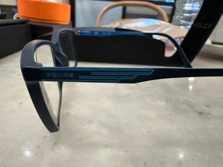 Gafas de la marca Police para hombre con un diseño moderno y elegante. - Montura de color azul. - Detalle de líneas en la patilla.