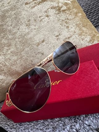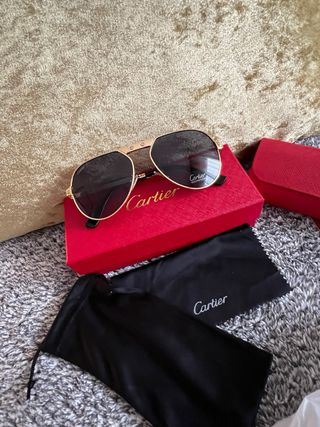 Gafas de sol Cartier originales para hombre, diseño elegante con lentes marrón oscuro y montura al aire con detalles metálicos en acabado dorado. Modelo icónico y sofisticado, ligero y muy cómodo para uso diario. Artículo nuevo a estrenar, sin uso, en estado impecable. Incluye estuche original Cartier y caja protectora. Se entrega exactamente lo que se muestra en las imágenes. Vendedor profesional, trato serio y transparente. Envíos rápidos y bien protegidos en 24/48h. #cartier #gafascartier #gafasdesol #luxury #modahombre #originales #premium #accesorios #elegante #exclusivo