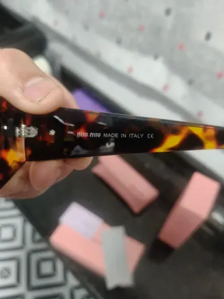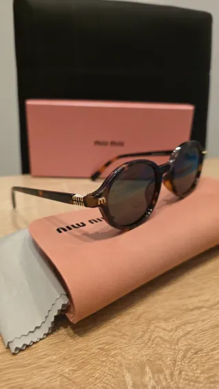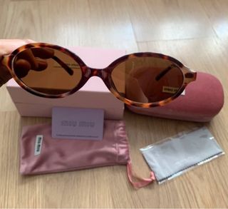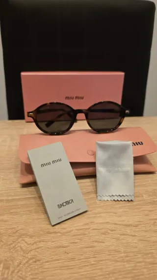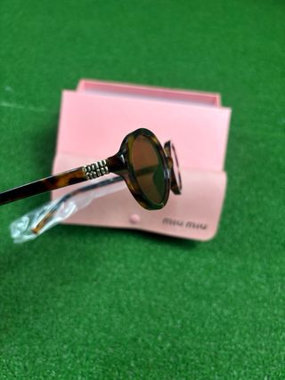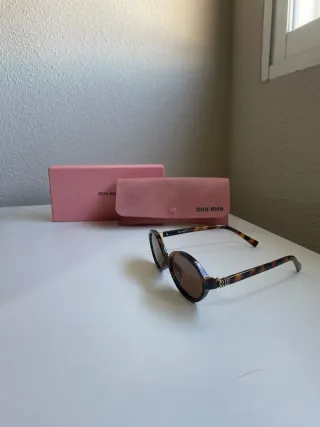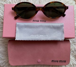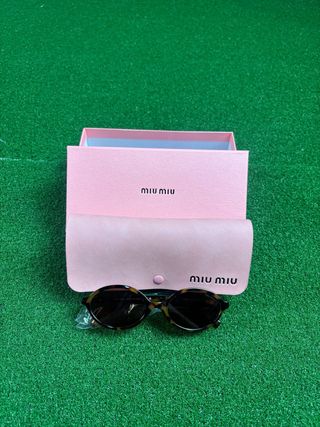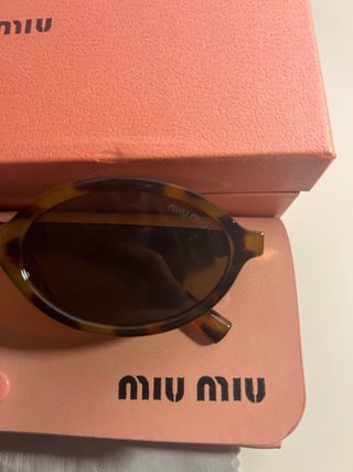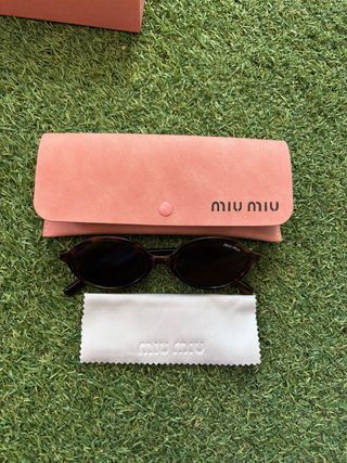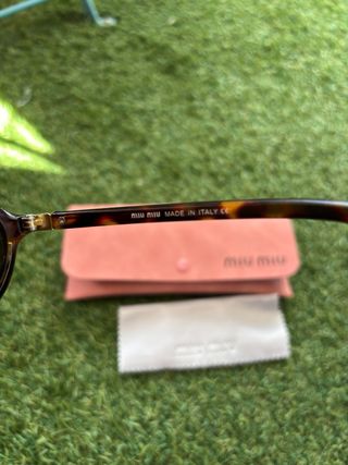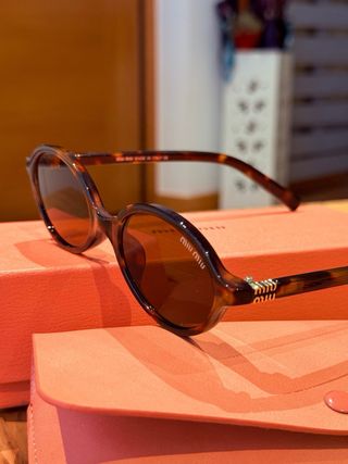 Gafas de sol Miu Miu con montura estilo tortoise. - Incluye caja original. - Funda protectora. - Paño de limpieza. - Tarjeta de autenticidad.