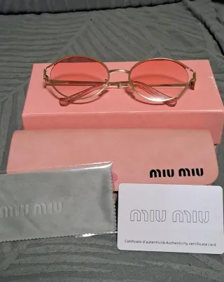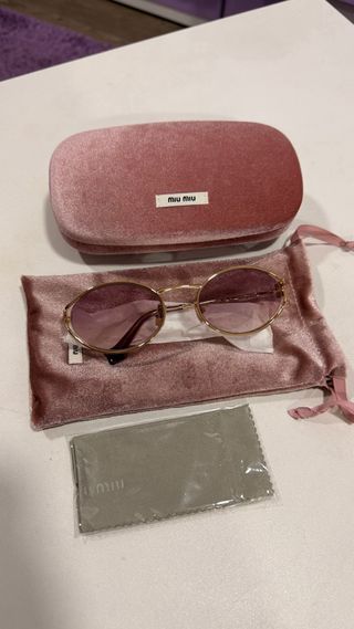 Gafas de sol Miu Miu en color rosa, a estrenar. Se las regalaron a mi hermana hace unos meses pero no las ha usado nunca están es perfecto estado y conservan si envoltura y etiquetas, el precio es negociable y el envío lo más rápido posible. - Montura llamativa. - Lentes de alta calidad.