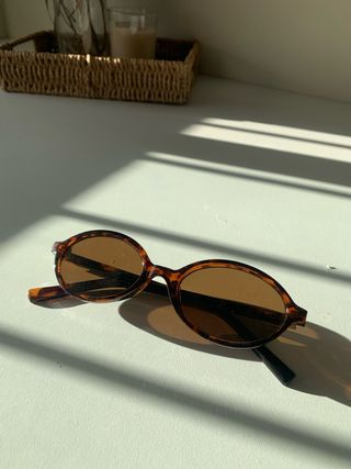 Gafas de sol de diseñador con un estilo clásico. - Montura de acetato con estampado de carey. - Lentes marrones con protección UV. - Incluye estuche y paño de limpieza.