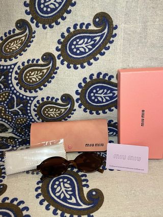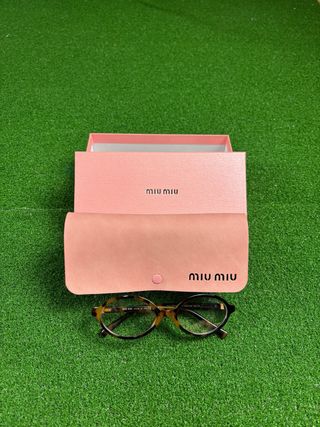 Gafas de la marca Miu Miu en color marrón. - Incluye funda rígida. - Incluye funda blanda de terciopelo. - Incluye paño de limpieza. - Incluye caja original.