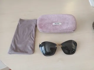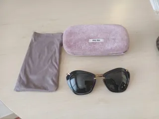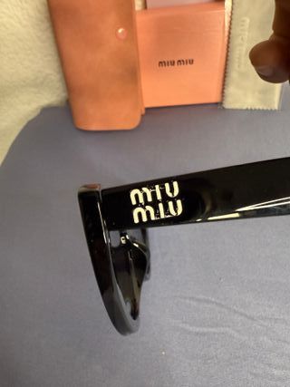 Vendo gafas de sol Miu Miu MU 11WS en color negro, originales. Usadas solo en un par de ocasiones, están casi nuevas, sin marcas visibles. Lentes y montura en muy buen estado. Modelo clásico y fácil de combinar, quedan muy bien puestas. Incluyen estuche protector original, todo bien cuidado. 🎁Ideal para regalo.🎁