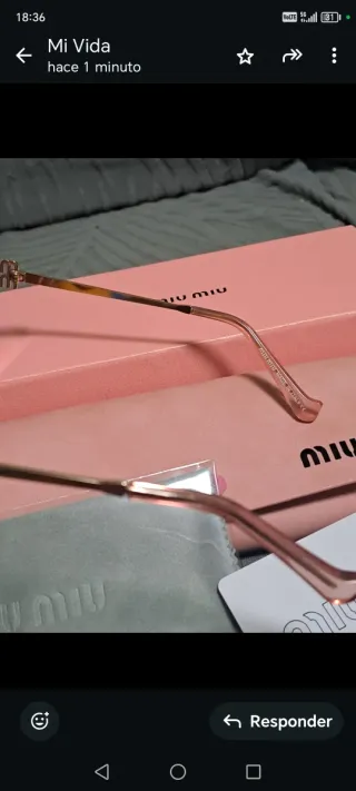 Incluye: Estuche rígido rosa Miu Miu Caja original Paño de limpieza con logo Tarjeta/librito Miu Miu Gafas modelo 2307 – tamaño 56□18–142 – color C1 (negro) Estado: Sin rayones en las lentes, montura en perfectas condiciones. Todo muy bien cuidado. Detalles: Diseño moderno y elegante, con montura negra brillante y lentes oscuras. Ideales para uso diario o para añadir un toque chic a cualquier look. Puedo enviar más fotos si lo necesitas