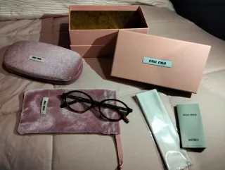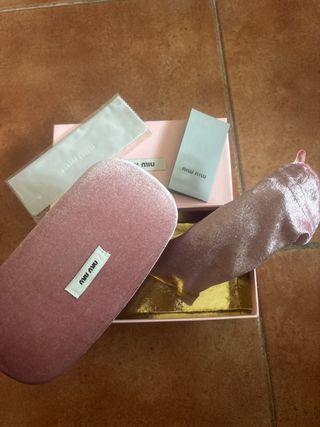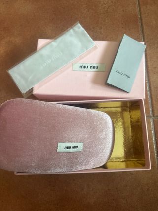 Set completo de gafas Miu Miu. - Caja original. - Funda de terciopelo. - Paño de limpieza. - Tarjeta de autenticidad.