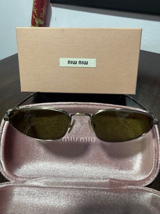 Elegantes gafas de sol Miu Miu con un diseño sofisticado. - Montura en tonos marrón y dorado. - Estilo moderno y chic. - No usadas nuevas - Precio negociable