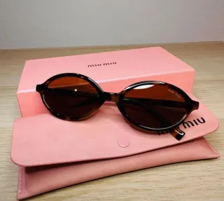 Gafas de sol Miu Miu con montura estilo tortoise. - Incluye caja original. - Funda protectora. - Paño de limpieza. - Tarjeta de autenticidad.