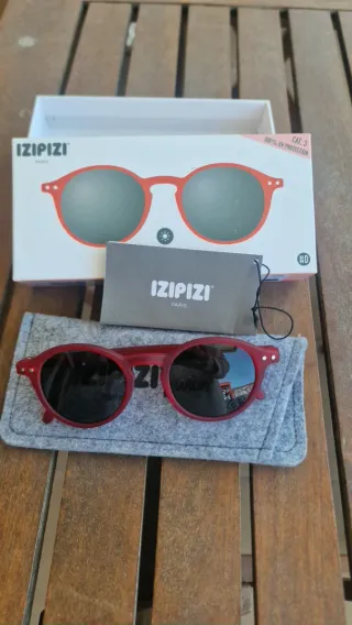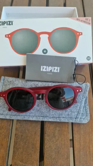 Gafas de sol Izipizi con montura roja y lentes negras. - Montura de color rojo. - Lentes de color negro. - Protección UV Cat. 3. En petfecto estado. No rayaduras. No utilizadas.