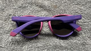 Gafas de sol Polaroid de máxima calidad, para niño o niña. Incluyen funda protectora roja y paño de limpieza. - Montura bicolor: morado y turquesa. - Lentes polarizadas. - Funda de tela con cierre de cordón. - Paño de microfibra con logo tienda de mucho renombre, Cottet, que fue donde compramos estas gafas. -Se venden por cambio de talla.