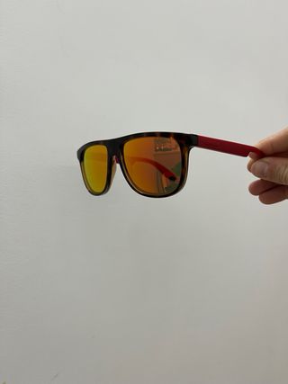 Gafas de sol Carrera con lentes rojas y montura marrón. - Incluye funda protectora. - Incluye paño de limpieza.