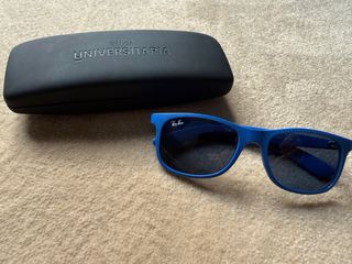 Gafas de sol Ray-Ban para niño en color azul y negro. Incluyen funda. - Montura azul. - Lentes negras. - Funda protectora negra con logo 'Optica Universitaria'.