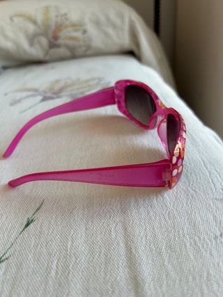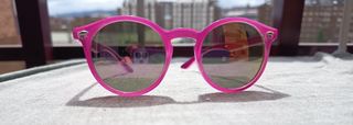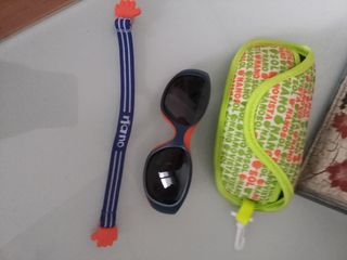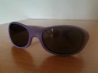 Gafas de sol de óptica con muy poco uso, la montura como nueva y los cristales impecables. Marca Cébé, diseño muy cómodo que se adapta muy bien a la cara, aproximadamente para niños entre 4 y 6 años. Combinada en dos colores, lila y malva. Incluye correa y funda.