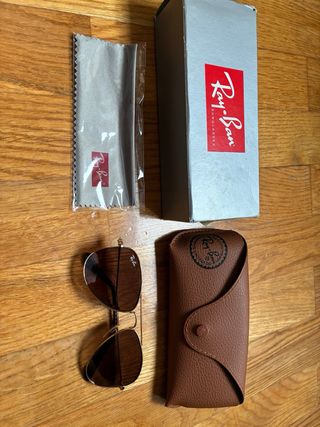 Gafas de sol RayBan Aviator para niños. Son unas gafas elegantes y en muy buen estado. - Montura dorada. - Lentes marrones.