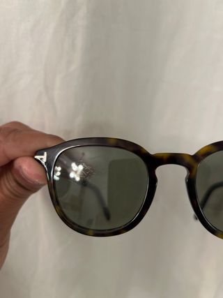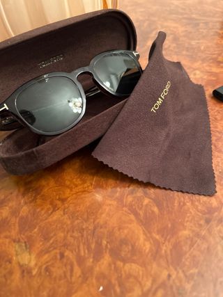 Gafas de sol Tom Ford originales moldura pasta marron.Modelo PAX 49-21 .Incluyen su estuche terciopelado original con su correspondiente ganuza. Las lentes estan rayadas pero la moldura en buen estado. De ahí su precio rebajado Se puede usar la moldura para gafas graduadas.. - Montura de acetato. - Lentes tintadas. - Logo de Tom Ford en las patillas.