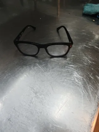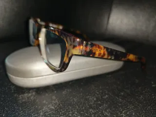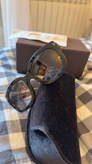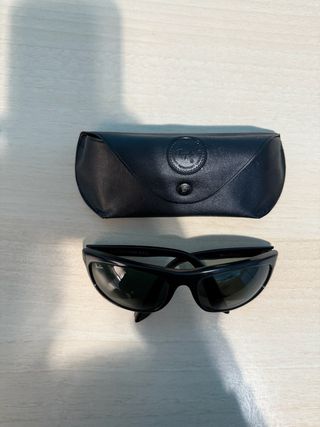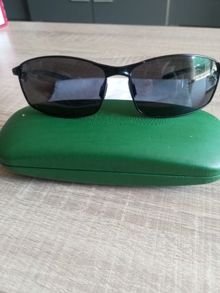 Gafas de sol 😎 de pasta negra y cristal claro, adquiridas en la óptica de El corte inglés, ya no conservo la funda. Pequeño arañazo en uno de los cristales por el toque con la patilla que casi ni se aprecia. En buen estado, por supuesto son originales.