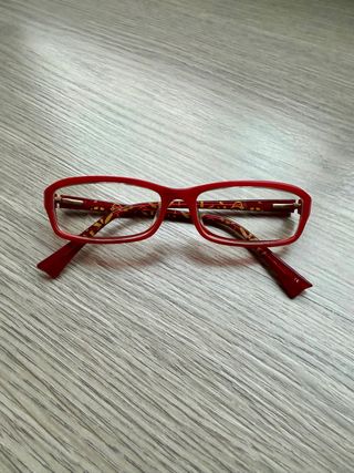 Gafas de la marca Mandarina Duck en color rojo. - Montura de diseño. - Detalle interior con estampado. - Patillas finas.