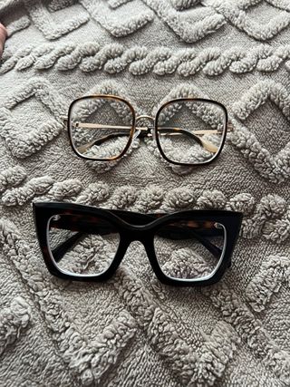 Pack de gafas de ver. Las de pasta son de Firmoo con las lentes cambiadas en Multi ópticas y las otras la montura y los cristales son de multiopticas. La graduación actual que tienen son ojo derecho -2, ojo izquierdo - 1,75 y 0,5 de astigmatismo.