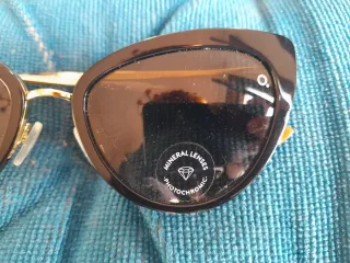 Gafas de sol elegantes. Son de color negro con detalles dorados. - Montura de pasta. - Lentes oscuras.