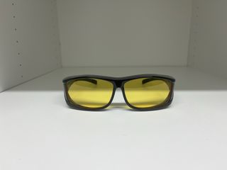 Gafas de farmacia con lentes amarillas y montura negra. - Protección contra rayos UV.