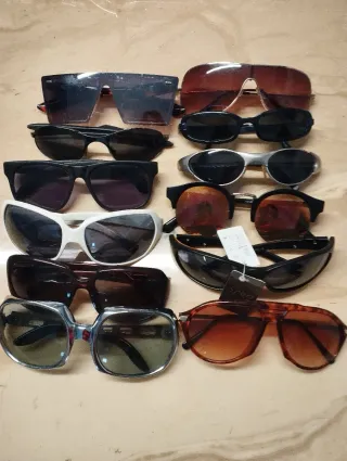 Lote variado de 38 gafas de sol, ninguna de ellas de óptica - Monturas de diferentes estilos. - Lentes con acabados diversos. Para disfraces, para eventos, para diversión La última foto corresponde a dos gafas que se han añadido al lote de anette