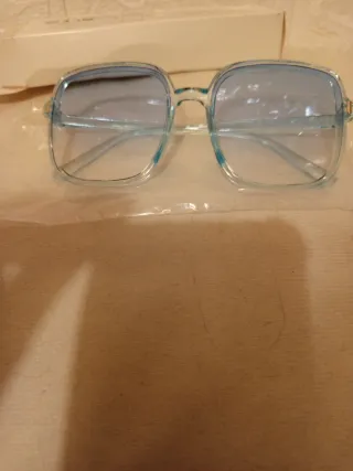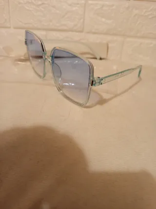 Gafas de sol con montura transparente y lentes polarizadas. Precio negociable. - Montura de plástico transparente. - Lentes con efecto espejo.