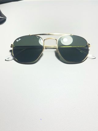 Ray-Ban Marshal RB3648 originales. Como nuevas, muy poco uso y sin arañazos en las lentes. Montura dorada con lente verde G15. Incluyen estuche original en perfecto estado. Solo leves marcas en letras interiores de la patilla (uso normal).