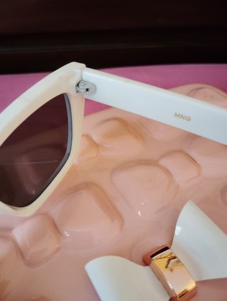 Gafas de sol elegantes de la marca Mango. Son de color blanco y tienen un diseño moderno y sofisticado. - Montura blanca de estilo moderno. - Lentes oscuras.