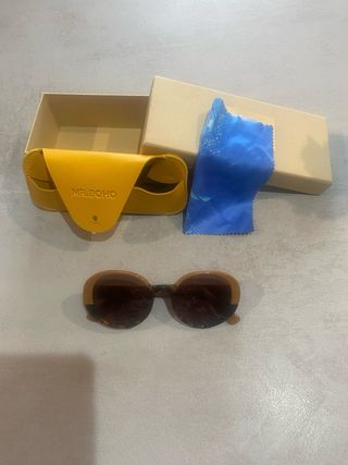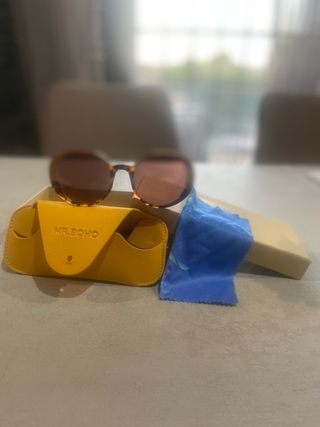 Gafas de sol MR.BOHO, nuevas a estrenar. Son de montura marrón con lentes de color marrón rojizo. Se incluyen una funda amarilla y un paño de limpieza. Nunca se han usado.