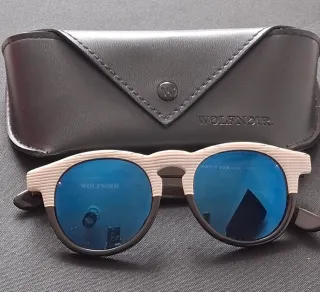 Gafas de sol de la marca Wolfnoir con lentes azules y montura negra. - Diseño moderno y elegante. - Incluye funda protectora. - solo persona interesada.