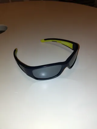 Gafas de sol diseñadas para niños, con un estilo deportivo y moderno. modelo teen 800 - Montura azul con detalles en amarillo. - Lentes grises para una visión clara. - Categoría 4