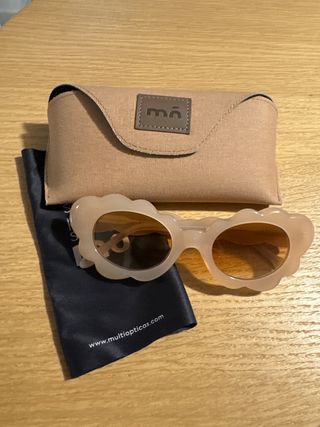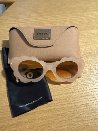 Gafas de sol con un diseño original y divertido. - Montura en forma de flor. - Lentes con tonalidad marrón. - Incluye funda protectora.